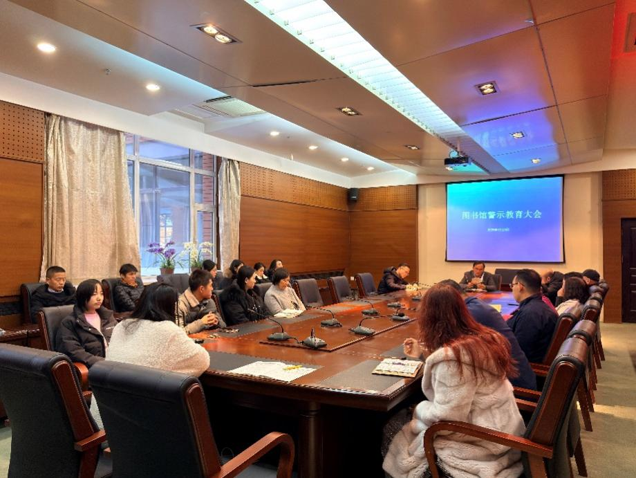 为持续强化全体馆员廉洁自律意识,筑牢科研经费使用与师德师风纪律防线,2025年12月3日,图书馆在一楼1006会议室召开警示教育大会。会议由党总支书记、馆长朱雪刚主持,全体馆员参加会议。