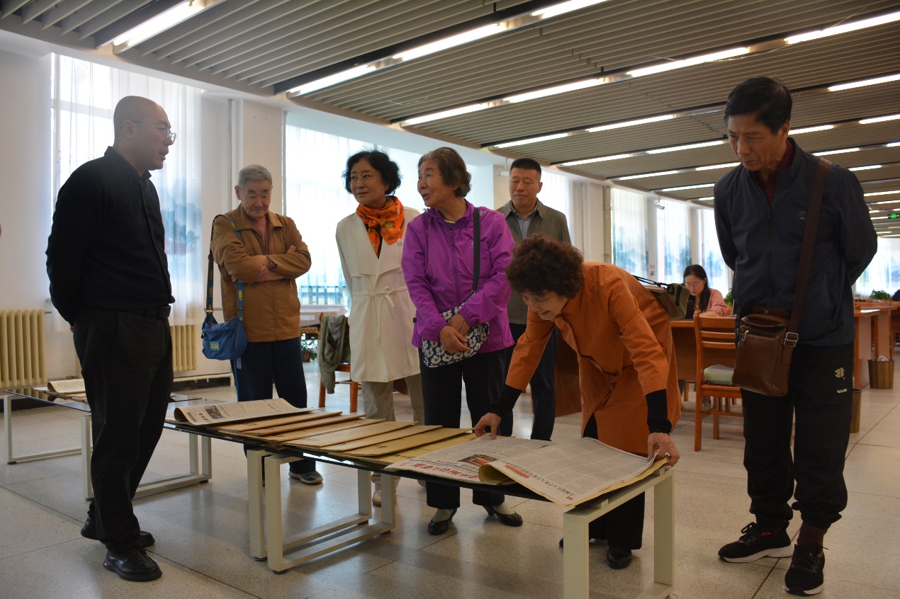 老同志一行在离退休工作处处长张爱和图书馆副馆长彭昕星的陪同下,先后参观了图书馆历史陈列室、图书馆文化育人成果展、教师资料阅览室、经典文库阅览室、第三图书阅览室、合订本报刊阅览室和墨缘书苑。每到一处,老同志们都详细了解馆藏资源建设、读者服务流程、数字化创新服务和文化服务育人等情况。在图书馆历史陈列室,当看到珍贵的老办公设备、老照片、老资料及图书馆在校内外多年取得的荣誉被妥善保存时,老同志们纷纷点头称赞,认为这是传承文化、留住记忆的重要举措。