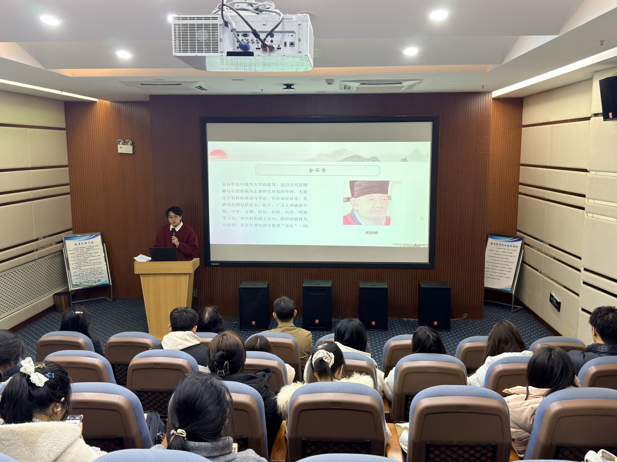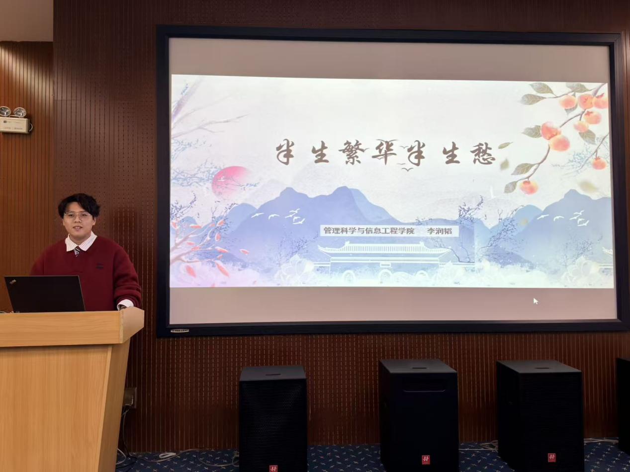 11月19日下午,由图书馆主办、校学生会学习部承办的第四十二期学子讲堂在图书馆一楼影音室顺利举行。本期主题为“半生繁华半生愁”,特邀我校管理科学与信息工程学院研究生李润韬同学担任主讲,带领师生共同走进这位才情横溢的宋代女词人跌宕起伏的一生。图书馆副馆长苏兴强、参考咨询部主任王兰、郭禹嘉出席本次活动。