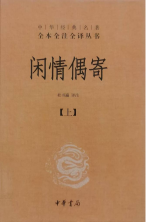 《闲情偶寄》是清代文学家李渔的著作,包含戏曲理论、饮食、园艺、养生等内容。全书分为《词曲部》、《演习部》、《声容部》、《居室部》、《器玩部》、《饮馔部》、《种植部》、《颐养部》等八个部分,涉及戏曲、歌舞、服饰、修容、园林、建筑、花卉、器玩、颐养、饮食等艺术和生活中的各种现象,并阐发了自己的主张,内容极为丰富。