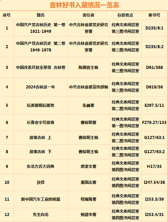 我们诚挚邀请全校师生积极关注、踊跃借阅“吉林好书”,在文字间行走白山松水,于书香中读懂大美吉林。(审核人 朱雪刚)