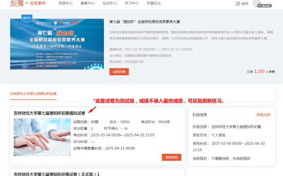报名成功后即可参加比赛,我们一共准备四套试卷,一套模拟卷和三套正式卷。